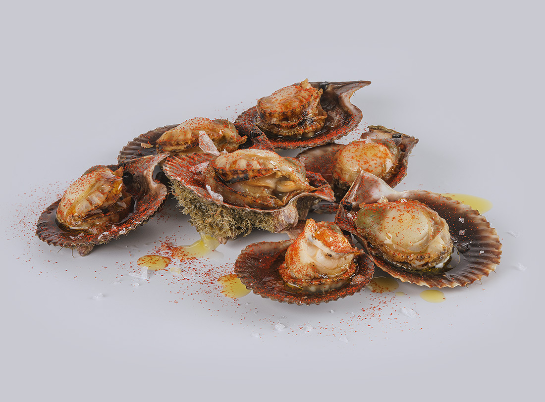 Sin más ingredientes añadidos a este plato que unas zamburiñas de primera categoría, procedentes de la costa de Galicia, y aliñadas de la forma más tradicional: a la gallega. Con tan solo unas escamas de sal, pimentón de la Vera ligeramente picante y aceite de oliva virgen extra, es como mejor se aprecia su característica textura y concentrado sabor a mar.
